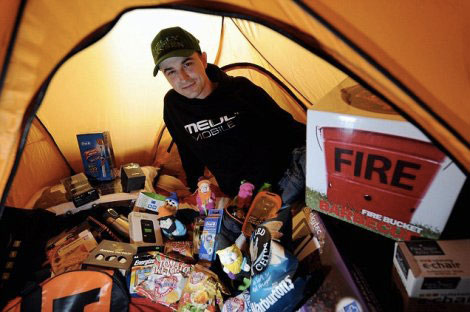 Vous pensez tout de suite que la folie a atteint ce jeune garçon ? Et bien non ! Il a bien toute sa tête et même plus encore puisqu’il est sponsorisé par la célèbre marque Chevrolet qui lui prête une voiture d’une valeur de 22.000€. Un autre magasin lui a fournit pour 1000€ de matériel de camping, la nourriture est aussi incluse.