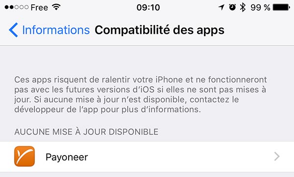 Apple explique clairement que : « Ces apps risquent de ralentir votre iPhone et ne fonctionneront pas avec les futures versions d’iOS si elles ne sont pas mises à jour. Si aucune mise à jour n’est disponible, contactez le développeur de l’app pour plus d’informations. »