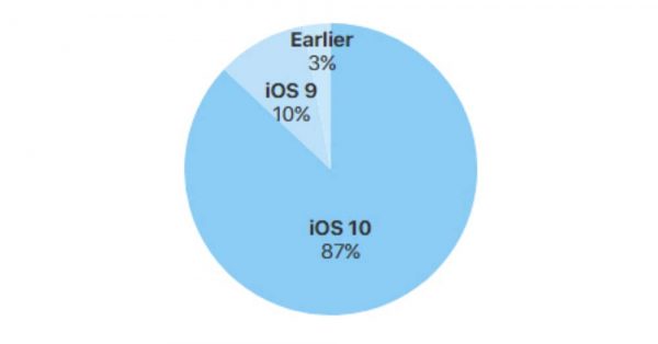 Apple a mis à jour les données sur la diffusion d’iOS 10, qui est maintenant installé sur 87% des appareils iOS en circulation à travers le monde.