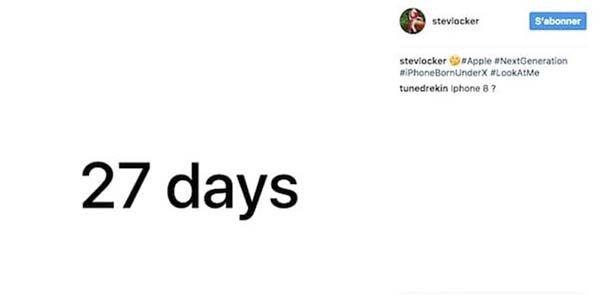 La date de la keynote viendrait-elle d’être dévoilée ? C’est en effet possible ! L’utilisateur Instagram stevlocker a publié une nouvelle photo sur laquelle on peut lire « 27 jours », accompagnée des hastags #NextGeneration et #iPhoneBornUnderX.