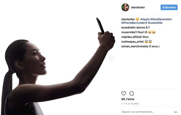 Dans une autre publication récente de Steve, on découvre cette femme tenant un smartphone face à elle, comme pour prendre un selfie, ou encore pour utiliser la reconnaissance faciale. Peut-être un signe dans ce dernier cas…