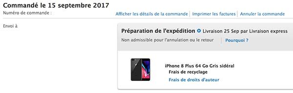 Nous avons en effet pu voir notre commande de l’iPhone 8 Plus 64Go Gris sidéral passée de l’état de commande à la préparation pour l’expédition en très peu de temps.