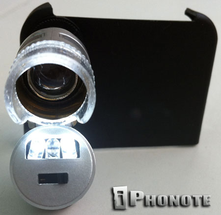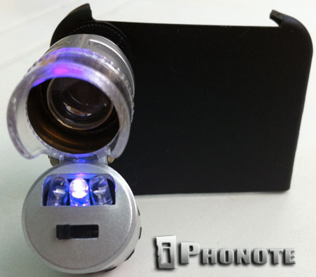 Fixez le microscope à la coque fournie, fixez la coque sur votre iPhone 4, et lancez l’appareil photo de votre téléphone. C’est aussi simple que cela.