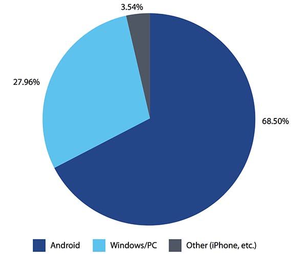 À noter que la plupart sont des appareils Android, avec 68,50%, suivi de Windows avec 27,96%. Sur iOS, il n’y a pas de chiffres précis, puisque le système d’exploitation d’Apple est inclus dans la catégorie « Autres » avec 3,54%, mais Nokia confirme que c’est toujours le système mobile le plus sûr.