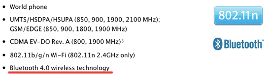 Cette nouvelle génération d’iPhone regorge de plusieurs nouveautés très intéressante comme Siri mais aussi son » Bluetooth 4.0 wireless technology « . La version précédente 3.0 ne dépasse pas l’utilisation au-delà de 20-30 mètres (selon les obstacles). Maintenant et plus que jamais, le Bluetooth 4.0 sera pour une portée de 50 mètres, à l’égal Macbook Air et Mini.