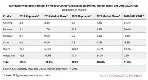 L’IDC Forecast a publié une prévision du marché des wearables jusqu’en 2022, qui continue de considérer le système watchOS d’Apple comme le dominant de ce marché des appareils portables pour les cinq prochaines années, bien que son avantage diminuera dans le même temps.