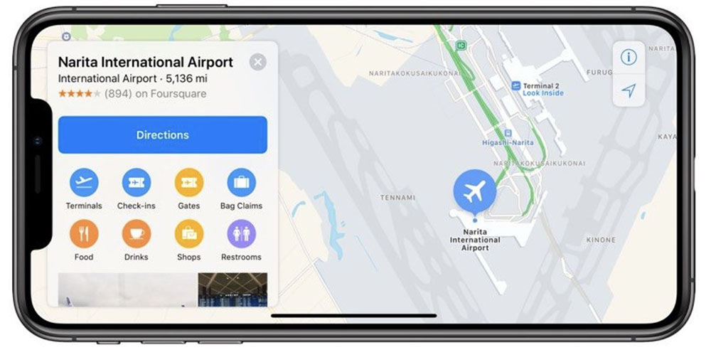 Les cartes internes des centres commerciaux et des aéroports ont été introduites dans iOS 11, fournissant une présentation complète de chaque emplacement avec des icônes pour les restaurants, les ascenseurs, les toilettes, les magasins et autres points de repère.