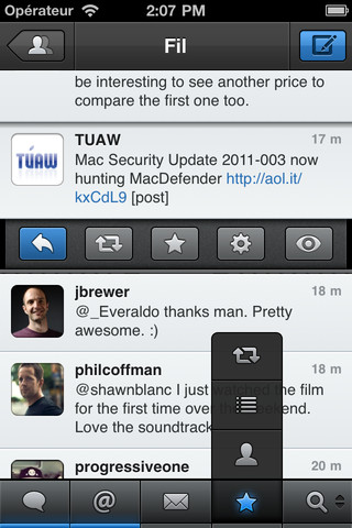 L’application Tweetbot bien connu par tous utilisateurs de Twitter, vient de faire une petite mise à jour. Rappellons que Tweetbot est le meilleur client du genre proposer sur l’AppStore. Cette nouvelle version 1.7.1 supprime le bouton » Supprimer » sur les tweets qui ne sont pas les vôtres. A savoir qu’elle est pleinement compatible avec l’iOS 5 depuis la mise à jour 1.7.