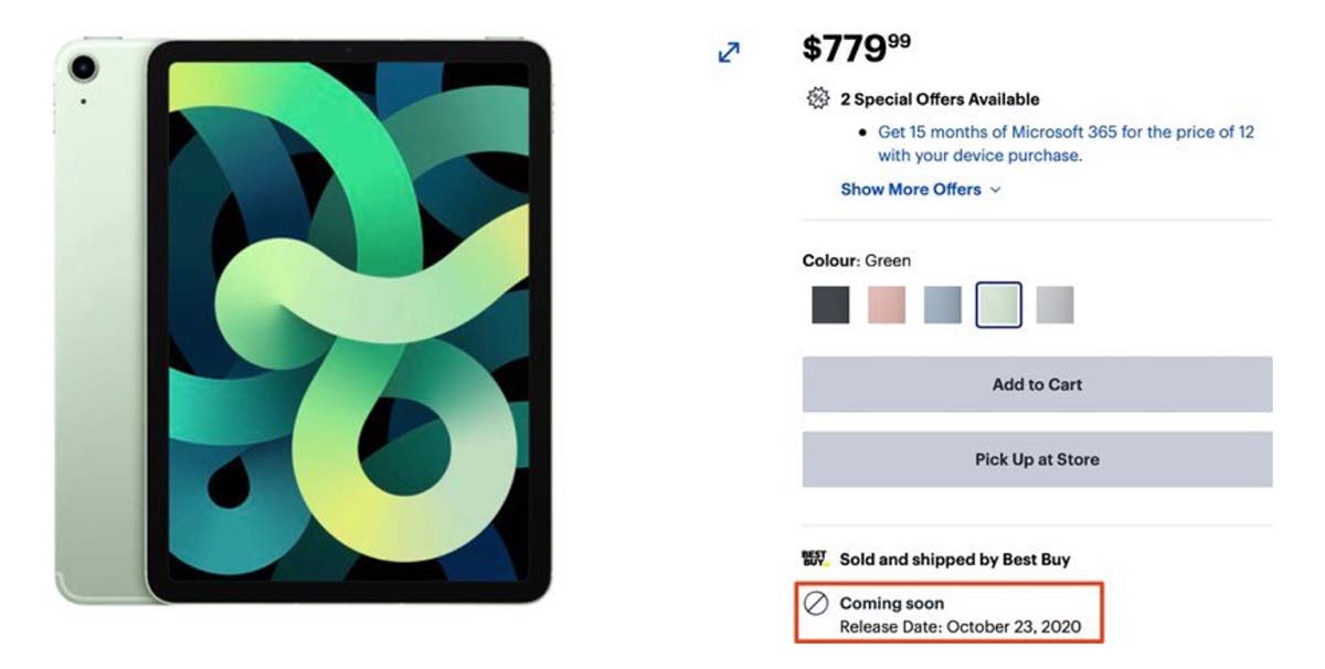 Bien que le site Web d’Apple affiche toujours une « disponibilité d’octobre » générique, le portail canadien de Best Buy annonce sa date de sortie le 23 octobre. C’est une date plausible, étant donné qu’elle coïnciderait avec celle de l’iPhone 12 et de l’iPhone 12 Pro. Si tel est le cas, il est probable qu’Apple activera les précommandes d’iPad Air 4 dès demain, le 16 octobre.