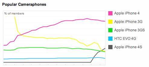 Comme vous pouvez le constatez sur le graphique, l’iPhone 4S a battu en très peu de temps l’iPhone 3G/3S et le HTC EVO 4G.