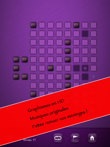 Le principe est simple, il faut supprimer toutes les cases pleines en tapant dessus et mener le curseur rouge jusqu’à la dernière case. Vous passerez au niveau suivant seulement si toutes les cases sont effacées. Au fur et à mesure des 50 tableaux, le jeu se complique avec des obstacles de plus en plus envahissants.