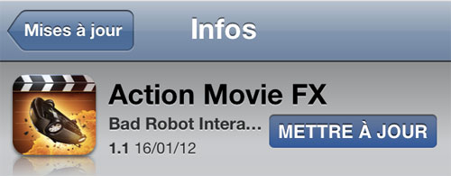 Glissez-vous dans la peau d’un cinéaste d’Hollywood avec Action Movie FX et faites vos propres vidéos catastrophes. Nous vous l’avions présenté dans cet article, elle revient dans une mise à jour v 1.1 avec de nouveaux effets spéciaux « le crash d’un jet et la panne électrique » + « Rock démolition (gratuit) ». L’éditeur Bad Robot Interactive indique avoir corrigé et amélioré les performances pour l’iPod Touch 4G.