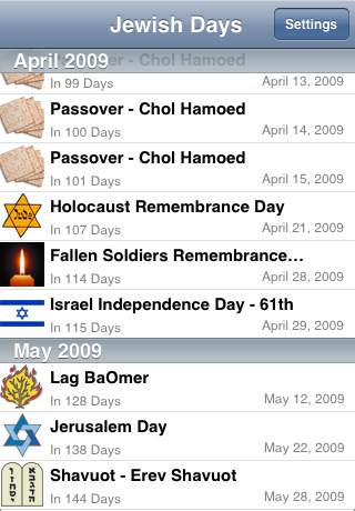 * Ability to choose which events to show (Israeli Holidays, Jewish Holidays, Minor Jewish Holidays)