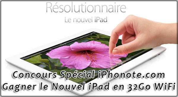 Pour fêter la sortie du Nouvel iPad, nous organisons ce Big Concours pour le Gagner en version 32Go (Blanc ou Noir au choix), et d’une valeur de 589€. Nous souhaitons vous récompenser pour votre fidélité, tous vos gentils commentaires de soutiens et d’encouragements.