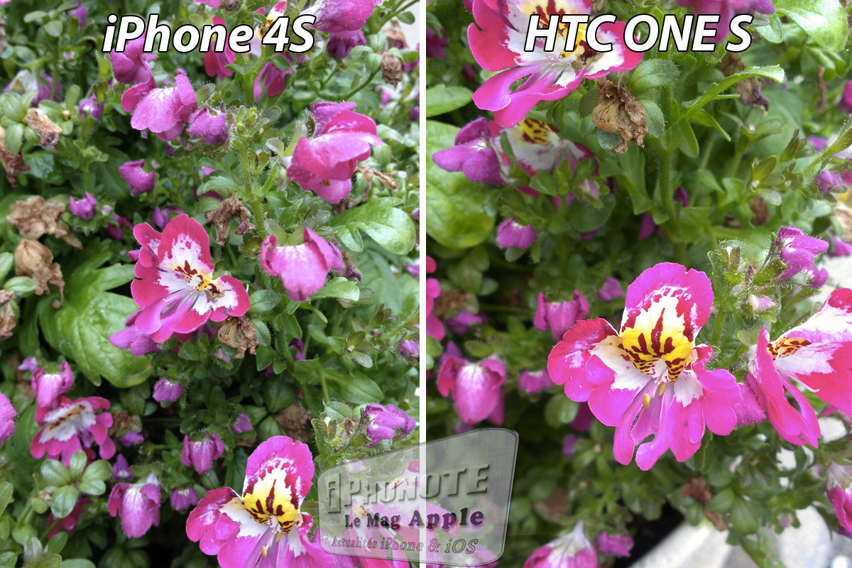 Vous remarquerez que les couleurs sont plus vives et plus profondes avec le HTC ONE S qu’avec l’iPhone 4S. On le voit plus sur la première que sur la deuxième en mode macro.