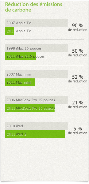 - Apple a vendu 55 millions d’exemplaires de sa tablette ce qui correspond à 7.590.000 tonnes de CO² soit la consommation de 1.265.000 voitures sur 1 an !