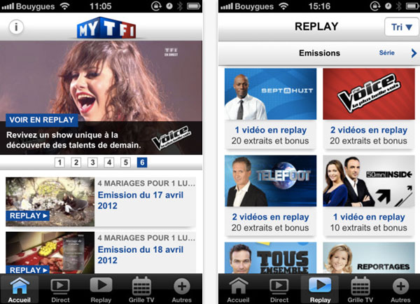 L’application MYTF1 vient de passer en version 2.0, retrouvez toutes vos émissions préférées de TF1 sur vos iDevices. Son design a été revu et facilite la navigation dans l’application, l’accès aux Replays est plus rapide tout comme les vidéos de chaque émission. Cette version est également compatible iPad et optimisée pour l’écran Retina.