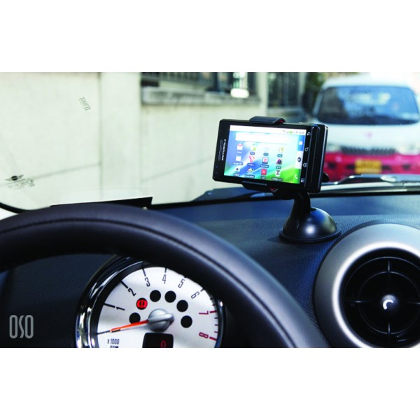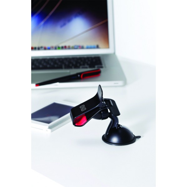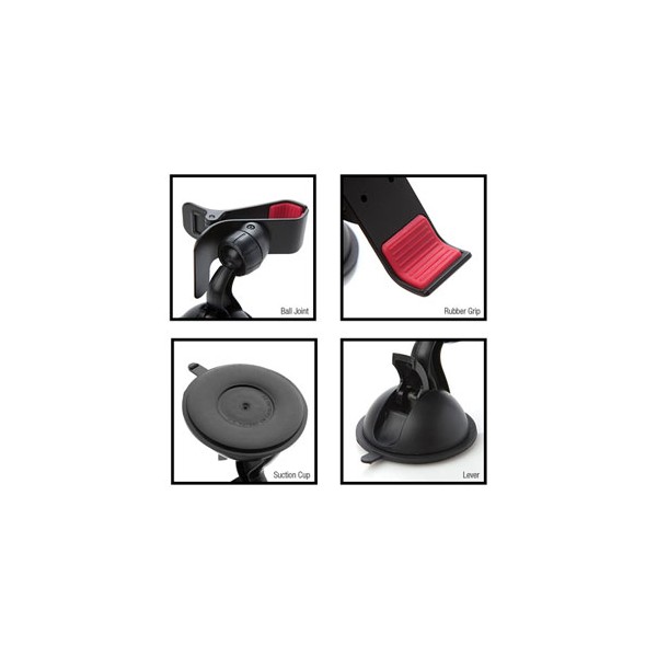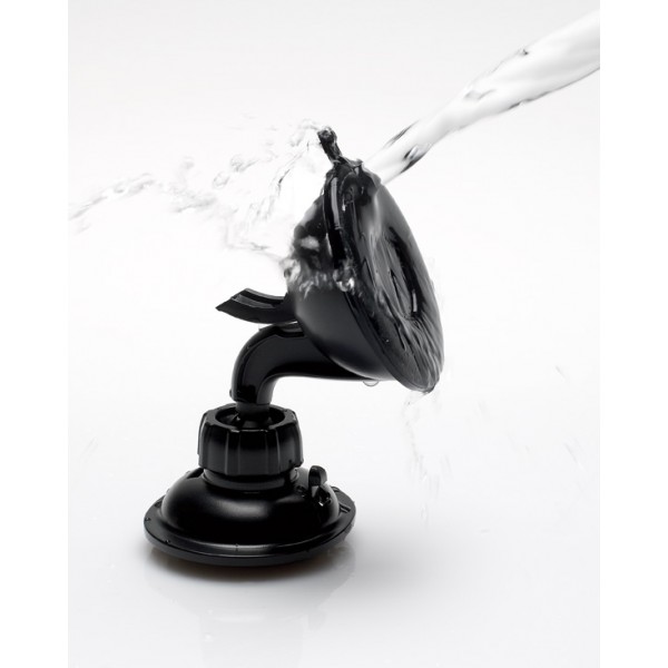 Sa ventouse brevetée adhère sur toutes les surfaces planes, le rendant parfaitement compatible avec les tableaux de bords et pare-brise.