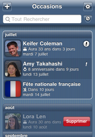 Rappelez-vous facilement les anniversaires de naissance, les anniversaires, les vacances/jours fériés et autres événements spéciaux avec Occasions! (comprend des alertes push et locale!)