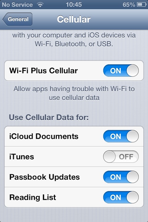 Actuellement, « WiFi plus Cellulaire » fonctionne avec les téléchargements iTunes, les sauvegardes iCloud, avec Passbook et Reading List. Certainement que d’autres applications seront compatible d’ici la version finale de l’iOS 6.