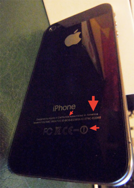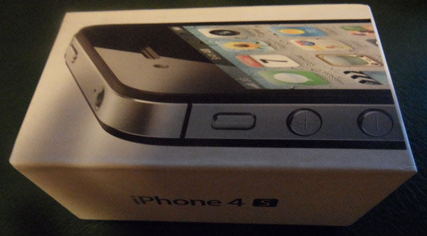 Sur la première photo, rien de particulier, la boîte est ressemble bien à l’originale. En revanche, c’est à l’allumage de l’appareil que les problèmes commencent. Mais avant cela, c’est au dos que l’on peut se rendre compte qu’il s’agit bien d’une copie d’iPhone 4S.