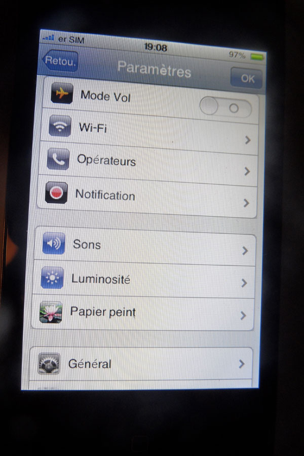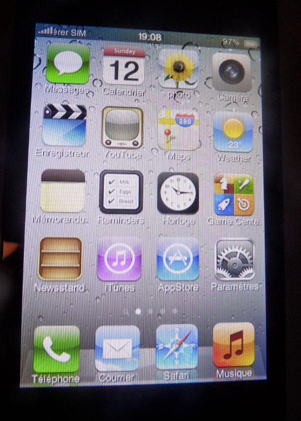 Sur la troisième photo, c’est d’autant plus alarmant puisque la traduction est partielle entre le français et l’anglais. Met la qualité d’écran qui est bien entendu très loin du Retina que propose l’iPhone 4S.