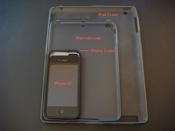 Alors que l’évènement d’Apple sera lancé dès demain, de nouvelles photos arrivent de MacRumors mettant en avant des présumées coques d’iPhone 5 et iPad Mini comparées à l’iPhone 4S et l’iPad 3. Nous ne savons pas encore si ces photos sont de réelles fuites ou de simples spéculations. Elles nous permettent de nous donner un idée ce à quoi on peut s’attendre peut-être demain ou lors d’une seconde conférence en octobre.