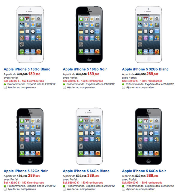 Ce n’est que 10€ de moins que Orange qui propose directement l’iPhone 5 à 199€. Donc pas besoin d’attendre 8 semaines pour bénéficier du remboursement de 150€ de SFR.