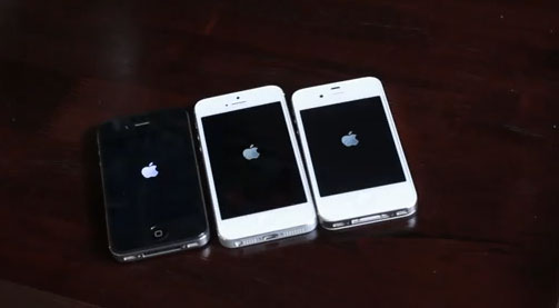 Comme vous le savez, l’iPhone 5 embarque une puce A6 annoncée par Apple comme deux fois plus rapide que l’iPhone 4S et son A5. Notre confrère IDB a pu tester la rapidité de démarrage entre l’iPhone 5, l’iPhone 4S et l’iPhone 4. Jeff a d’ailleurs eu dû mal à allumer les 3 en même temps. Après quelques secondes, il arrive enfin à trouver la parade.