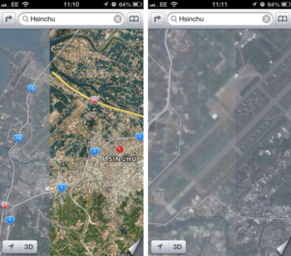Suite à la libération de l’iOS 6, Apple a abandonné Google pour proposer sa propre cartographie 3D dans sa nouvelle application Maps/Plans. Et selon un rapport de Taïwan News relayé par The Next Web, le gouvernement Taïwanais exige auprès d’Apple de rendre flou toutes les images satellites de la nouvelle installation anti-missile du pays proche de la base aérienne située dans le nord de Hsinchu.