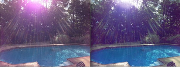 En attendant, une éventuelle mise à jour d’iOS 6 pour corriger ce problème, une nouvelle application nommée Camera Fix propose de diminuer voire même faire disparaître comme par magie le halo violet. Un exemple plutôt flagrant sur l’exemple photo ci-dessus. Elle est proposée à 0,89€ et fonctionne avec l’iPhone 5 mais également avec les autres appareils pommés.