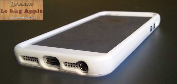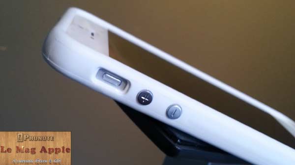 Les ouvertures sont parfaitement adaptées pour accéder à dock de charge et à la prise jack sur le dessous de l’iPhone 5, puis pour le mode silencieux. Les haut-parleurs sont également bien dégagés laissant passer le son sans souci. Seuls les boutons Power et volume sont protéger par d’autres boutons intégrés au Bumper.