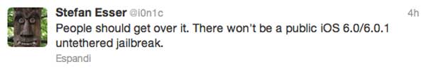 Les gens devraient commencer à l’accepter. Il n’y aura pas de Jailbreak Untethered pour iOS 6.0/iOS 6.0.1 public.