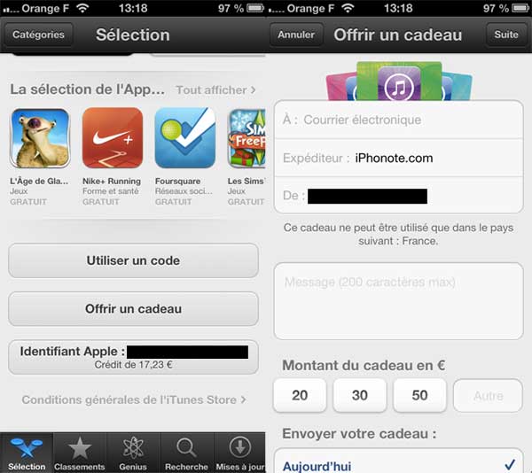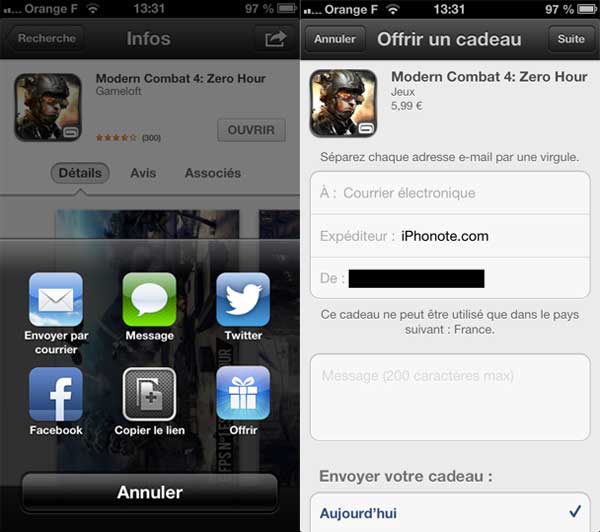 Cette nuit, Apple a réactivé la possibilité d’offrir des applications sous iOS 6 via l’onglet de partage disponible sur l’App Store. L’option avait disparu à la sortie de l’iOS 6, mais à l’approche de Noël, Apple permet à nouveau de faire des cadeaux à nos proches et d’en choisir la date de réception.