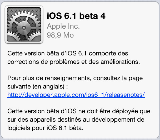L’iOS 6.1 bêta 4 est disponible pour les développeurs