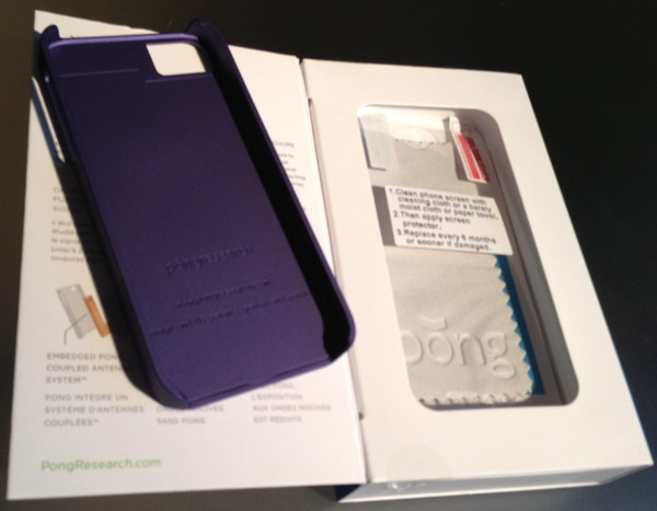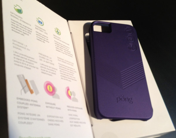 Comme je l’indiquais plus haut, le design à légèrement changé. On constate une ouverture pour l’appareil photo plus travaillée qui ne vient pas altérer vos prises photos/vidéos. Sur l’arrière, Pong ajoute les trois logos en haut à droite indiquant les fonctions principales de l’étui : Améliore le réseau, augmentation de l’autonomie de la batterie, et réduction des radiations. Et bien sans oublier que l’étui permet de protéger votre iPhone 5 contre les chocs et les rayures.