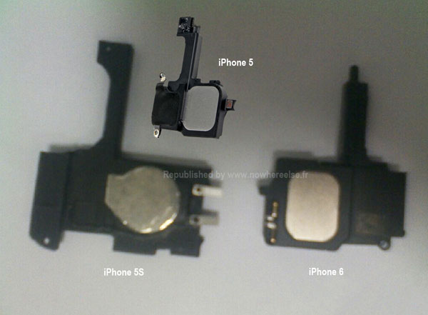 Le site présente ces images comme étant les haut-parleurs de l’iPhone 5S et iPhone 6, selon sa source anonyme. La source travaillerait dans une société de fabrication de composants pour le compte d’Apple. Sur ces photos, il a été ajouté le haut-parleur de l’iPhone 5 (image de iFixit) par NoWhereElse à titre de comparaison. De plus, leur source indique que l’iPhone 5S sera lancé en Mars et l’iPhone 6 en fin d’année 2013.