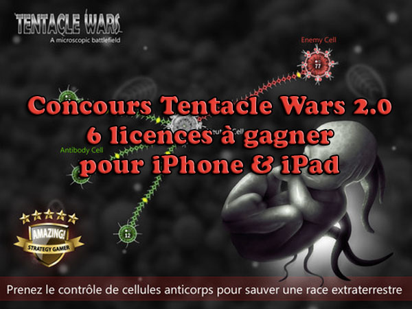 Et ce soir c’est la fête, nous vous proposons un second concours afin de Gagner 6 licences de Tentacle Wars 2.0 (3x 0,89€ – 3 x 2,69€) qui propose sa nouvelle version depuis aujourd’hui (détails plus bas). Nous avons 3 licences pour iPhone et 3 pour l’iPad en version HD. Il y aura donc 6 gagnants pour ce tirage. Le concours est organisé en partenariat avec FDG Entertainment. Pour participer, respectez bien les conditions énoncées plus bas.