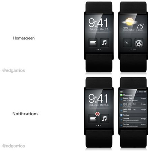 Dans ce second concept de Edgar Rios, la iWatch est également très réussi, il intègre un écran moins large et plus haut. La façon dont la iWtach est apposée sur le bracelet, elle donne l’impression d’une montre parfaitement normale et identique à celles actuelles.(via)
