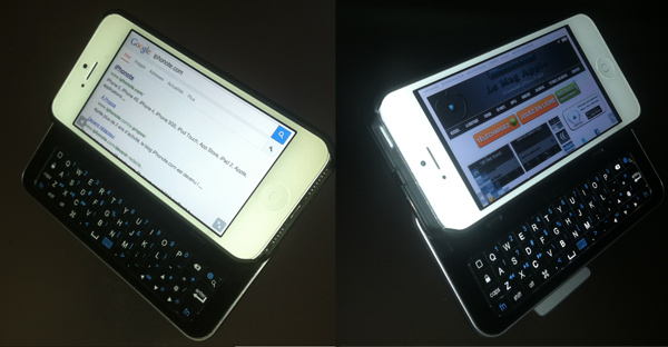Le clavier est accessible très facilement en le glissant vers le bas. Sur le côté, vous trouverez un bouton power pour allumer et l’appareiller avec l’iPhone 5. Vous aurez à saisir un code à 4 chiffres sur le clavier pour commencer la saisie. Une fois les deux appareils reliés, les touches peuvent être rétro-éclairés offrant un meilleur confort visuel dans un endroit sombre. Depuis le clavier, vous pouvez également contrôler la luminosité de l’écran, les contrôles de l’iPod, le copié/collé, verrouillage de l’iPhone 5 et bien d’autres raccourcis.