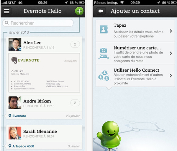 « Que vous rencontriez quelqu’un pour la première fois, que vous essayiez de vous souvenir d’informations importantes sur une personne que vous avez déjà rencontrée ou d’une réunion à laquelle vous avez participé, Evernote Hello est là pour vous aider. »