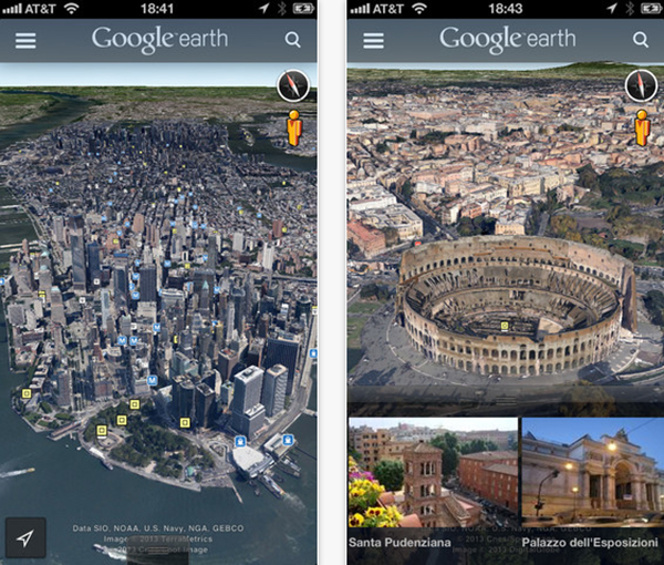 Tout d’abord, Google Earth embarque un nouveau panneau de menu sur la gauche facilitant la navigation dans l’app. Dans le même temps, elle améliore son système de recherche avec des résultats obtenus plus rapidement. Le plus important est aussi l’arrivée de  Google Maps Street View. Cette fonction vous permet de vous promener partout dans le monde et de visiter de nombreuses villes en 3D.