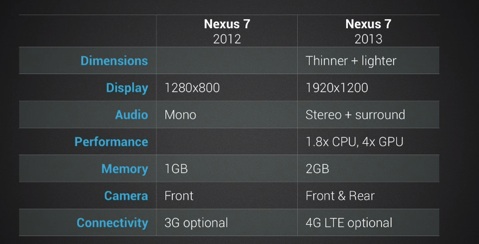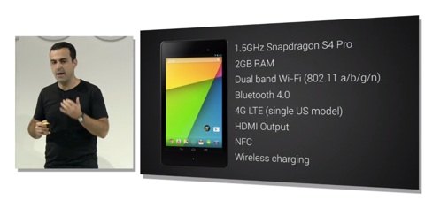 Il n’en reste pas moins que la Nexus 7 apporte quelques nouveautés sympathiques, et reste fabriquée par Asus. Tout d’abord, la mini tablette embarque un processeur Snapdragon S4 Pro 1,5 Ghz avec 2Go de RAM, le Buetooth 4 Low Energy pris en compte par Android 4.3, WiFi double bande 802.11n, la 4G LTE, une sortie HDMI, une puce NFC, un capteur photo de 1,2 mpx en façade et 5 mpx pour l’arrière, et pour finir, la recharge par induction fait son entrée.