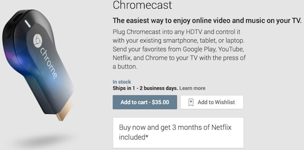 Et Chromecast sera disponible prochainement pour la modique somme de 35$. Pour le moment, ce sont les États-Unis d’être les premiers servis puisqu’il est disponibles dès maintenant sur le Google Play.