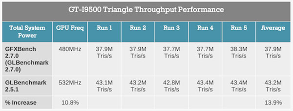 Samsung aurait tout simplement ajouté un code dans son Galaxy S4 de façon à gagner 10% à 15% sur les résultats Benchmarks, et ainsi être dans le haut du panier des smartphones puissants. En clair, le S4 embarque le SoC Exynos 5 Octa (5410) pour le modèle le plus performant, et son GPU est normalement de 480MHz dans toutes les applications. Seulement, ce même GPU passe à 532MHz lorsque l’application GFXBench est lancée. Le but étant d’augmenter ses résultats GPU à des fins journalistiques. Et oui, la presse a pris pour habitude de comparer plusieurs smartphones et notamment sur les performances GPU.