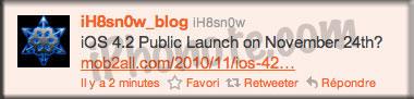 C’est via son twitter que iH8sn0w, nous annonce la sortie Officielle de l’iOS 4.2.
