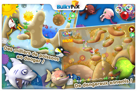 Vous allez devoir éviter les pièges et les dangers, creuser des passages dans le sol, dévier le courant, ou encore souffler sur des fleurs géantes pour ouvrir ou fermer des accès. Attention ! Requins somnolant, mouettes affamées, pingouins glisseurs et autres murènes géantes pullulent. Les prédateurs guettent et ne manqueront pas une occasion de se gaver avec vos petits poissons !