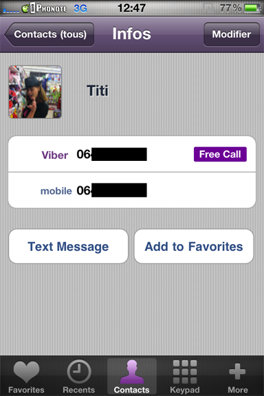 Bientôt l’envoi de SMS sera disponible en illimité. Actuellement, Viber est fonctionnel seulement sur iPhone mais l’iPod Touch et l’iPad sera compatible prochainement !