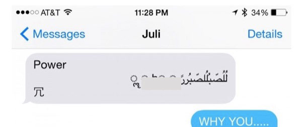 Depuis deux jours, de nombreux utilisateurs sont bloqués avec iMessage qui visiblement comporte un bug. Une suite de caractères arabes, chinois et marathi seraient la cause du problème. Apple a donc ajouté une page support dans laquelle elle explique comment se sortir du pétrin.