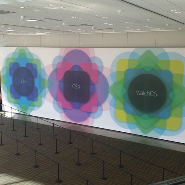 C’est un nouveau cliché d’une bannière présente dans le Moscone Center à San Francisco qui confirme que iOS, OS X mais également watchOS seront à l’honneur ce soir. Cette bannière avait déjà été aperçue il y a quelques jours et était prise a l’extérieur du bâtiment mais il semblerait que cette fois ci, un des participants à l’événement nous confirme nos dires.
